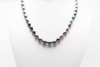 Multi-Colour Dark Metallic Pearl Strand Necklace with Silver Clasp