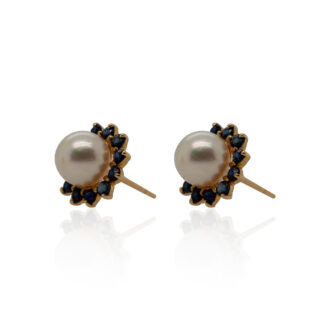 Pearl And Sapphire Stud Earrings in 14K Yellow Gold
