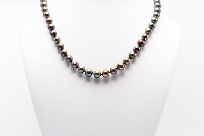 Dark Metallic Pearl Strand Necklace with Silver Clasp