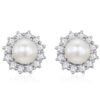 Genuine pearl and earth mined natural diamonds. halo stud earrings. 10K White Gold. 9.6mm Diameter