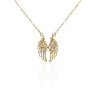 Fancy Wings Pendant On Chain Necklace In 10K Yellow Gold