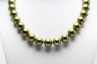 Shimmering Coppery Green Pearl Strand Necklace with Silver Clasp