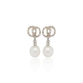 Pearl and Diamond Earrings In 14K Yellow Gold